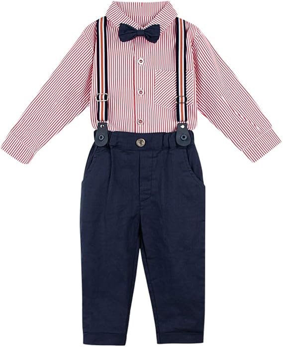 Camisa De Vestir Formal Bautizo Opawo Boda Pajarita Juego De 3 Piezas Para Bebe Sesion De Fotos Pantalones Con Tirantes Para Fiesta De Cumpleanos Infantil Caballero Tarta Regalos Para Recien Nacidos Ropa